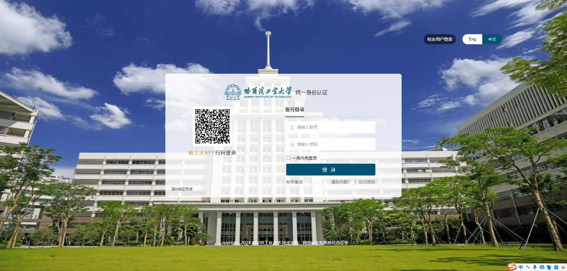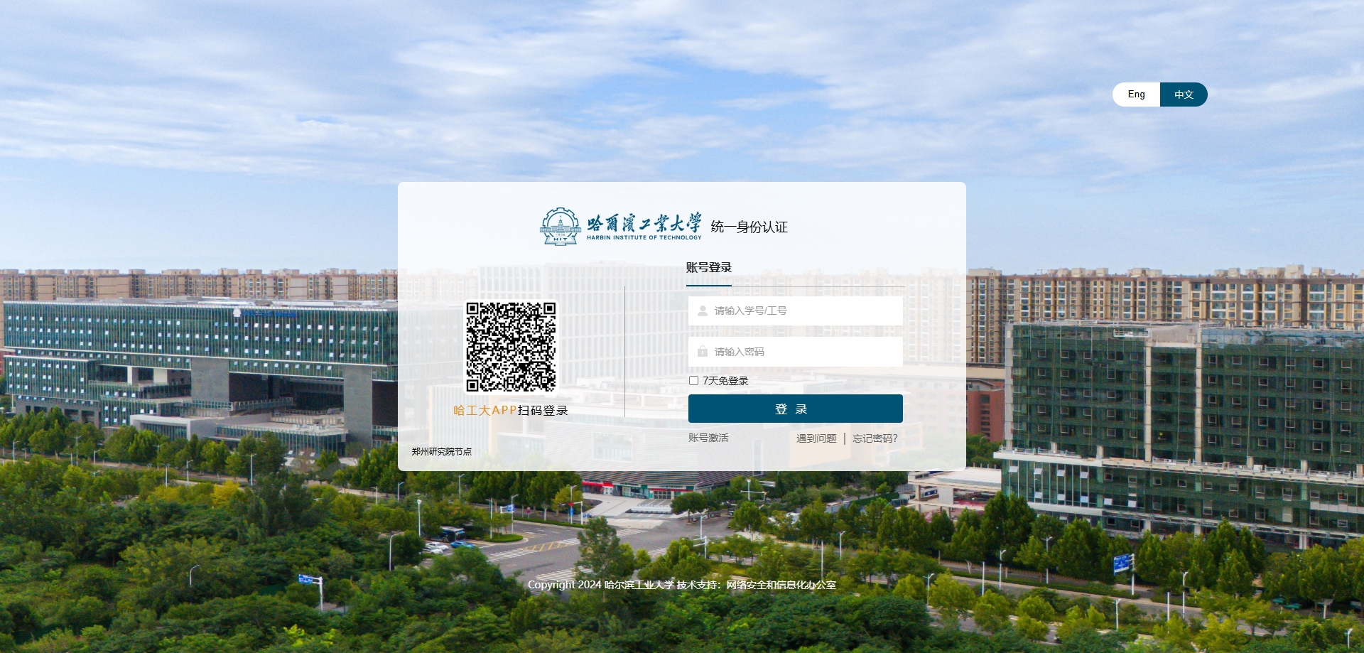 哈工大一校三区及各地研究院的应用系统全部通过“统一身份认证”平台进行身份认证登录和授权管理。