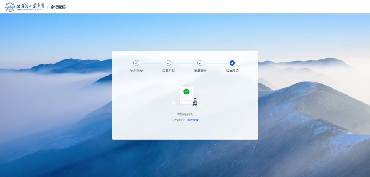当用户忘记密码时,可以点击页面【忘记密码?】功能通过绑定的手机、邮箱、哈工大APP验证码密码找回。