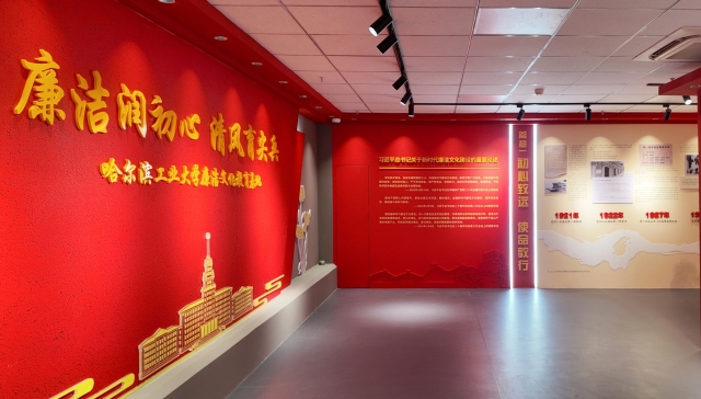 “廉洁润初心 清风育尖兵”哈尔滨工业大学廉洁文化教育基地位于一校区风雨操场1A层106室,是黑龙江省内首个由高校自主建立的廉洁教育主题展馆。基地在内容上突出党史教育、纪法教育、警示教育、正向引领,形式上融合图文展板、多媒体展播、实物展示、廉洁造型等元素,是教育引导广大党员师生坚定理想信念、增强党性修养、提升能力作风、筑牢思想防线的重要阵地。
